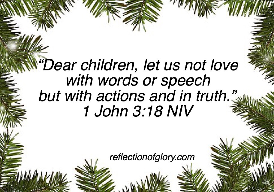 Actions speak louder than words! May we SHOUT God’s Love to the world by His Love manifesting through us through ACTION!