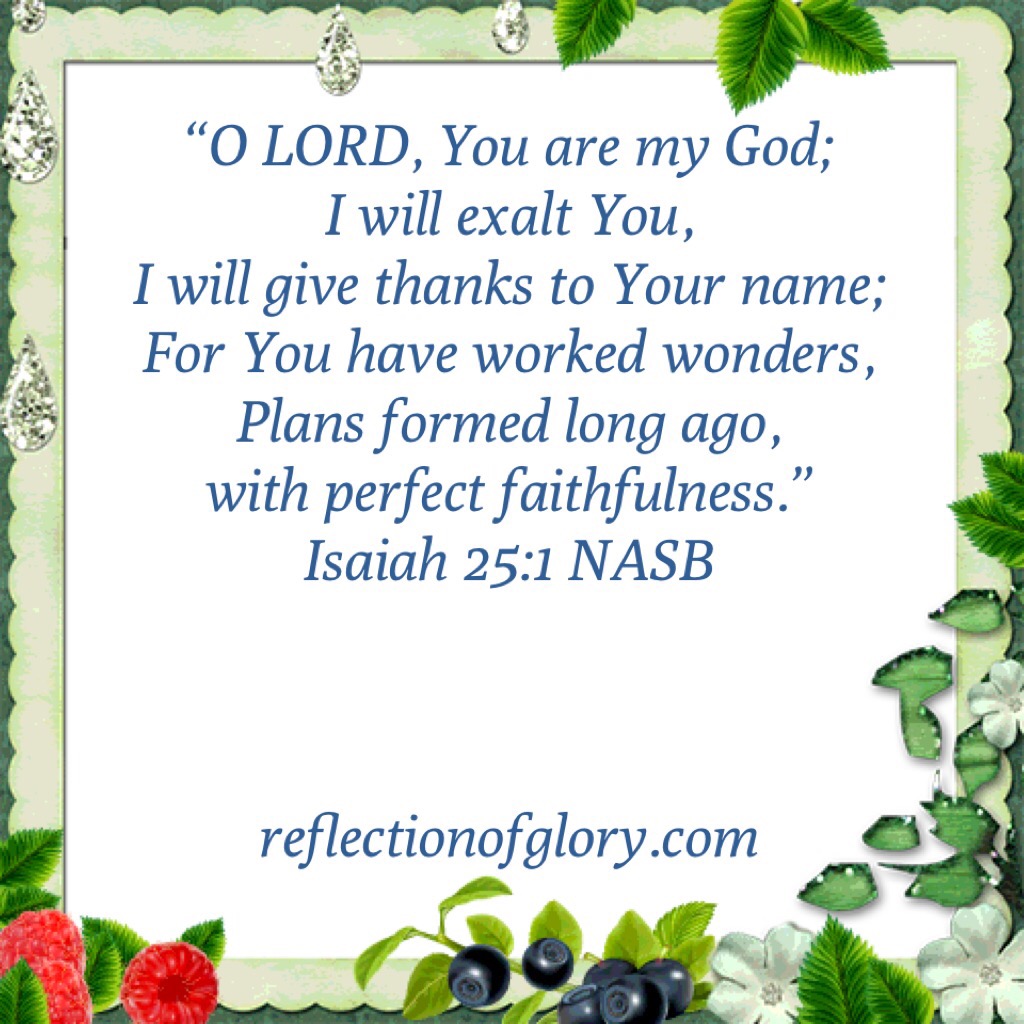 Isaiah 25:1 April 25, 2016 Tina K. Roach Uncategorized Share this: Click to share on Facebook (Opens in new window) Facebook Like Loading...