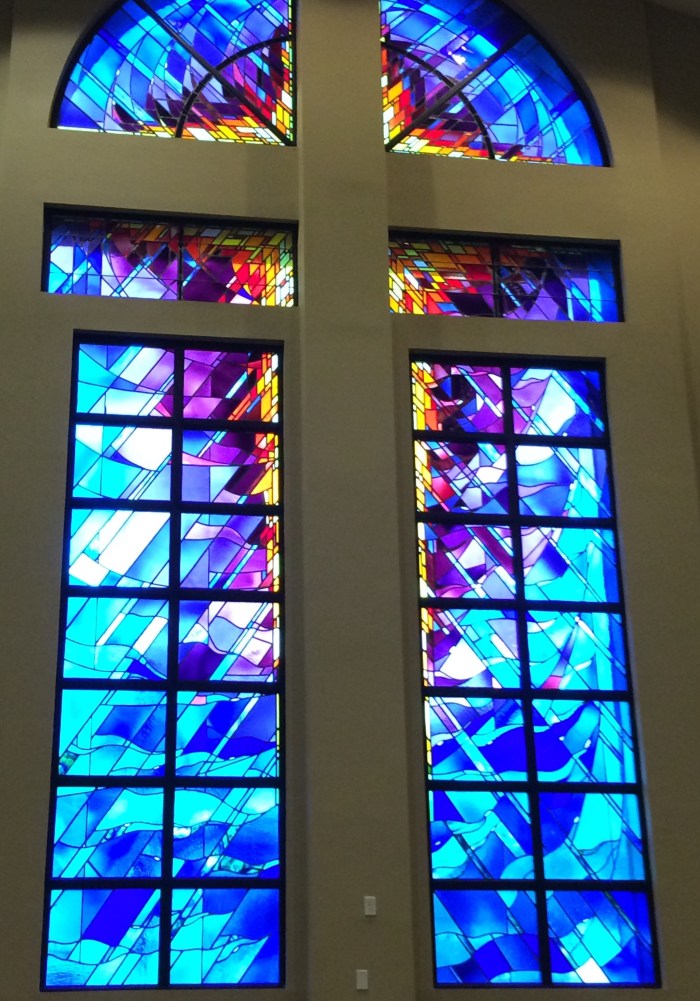 I love the stained glass cross window in our Sanctuary! At certain times, the sun blazes through the window and the reflection on the opposite wall looks like the cross is on fire! Oh Lord! May the FIRE of Your Holy Spirit burn brightly in us and through us! May we be a reflection of Your glory!