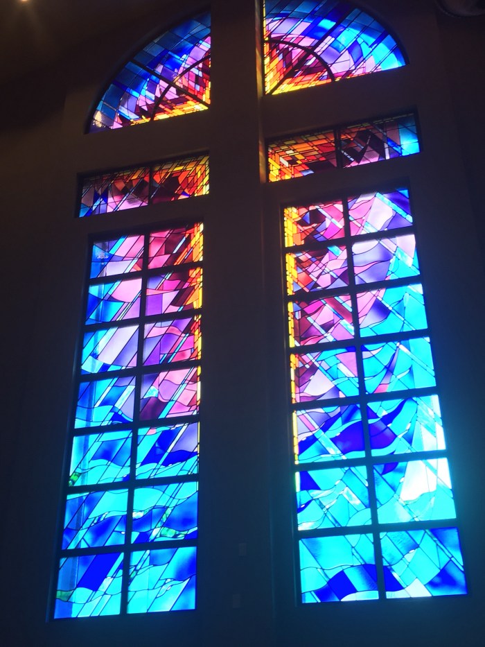 As I sit in the Church Sanctuary waiting on Choir Practice, I am once again overwhelmed by the beauty of the reflection of the stained glass cross on the wall.