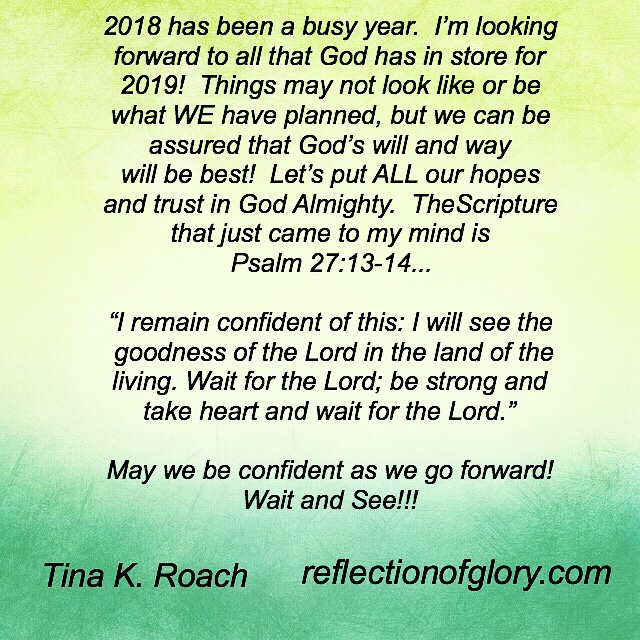 Wait and See!! January 7, 2019 Tina K. Roach ChristianityChrist, destiny, God, goodness of God, Holy Spirit, Jesus, life, Lord, no fear, trust, waiting, Will of God Share this: Click to share on Facebook (Opens in new window) Facebook Like Loading...