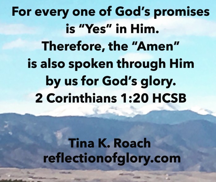 AMEN! January 12, 2019 Tina K. Roach ChristianityAmen, glory, God, Holy Spirit, Jesus, Lord, promises Share this: Click to share on Facebook (Opens in new window) Facebook Like Loading...