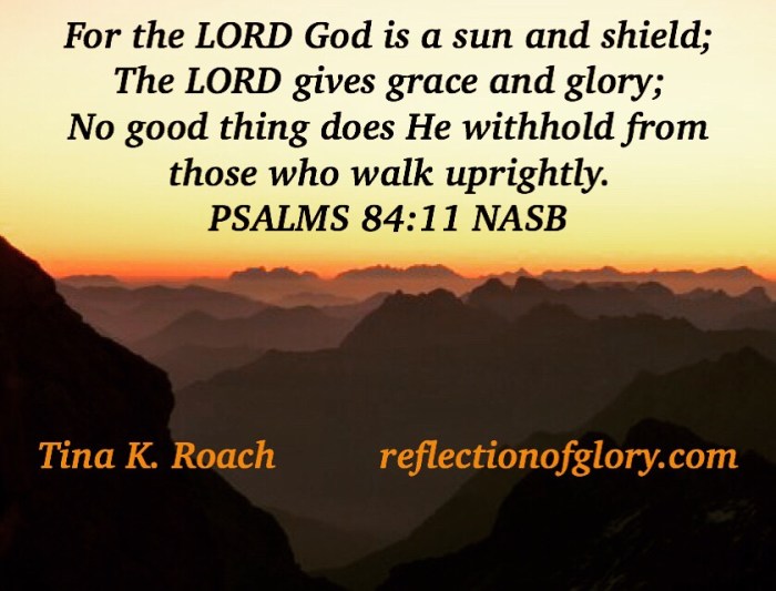 PSALMS 84:11 April 10, 2019 Tina K. Roach Christianityencouragement, glory, God, Holy Spirit, hope, Jesus, Lord, walk Share this: Share on Facebook (Opens in new window) Facebook Like Loading...