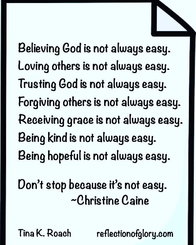 It’s not always easy… January 6, 2020 Tina K. Roach ChristianityFaith, God, help, Holy Spirit, hope, Jesus, life, Lord, love, trust It’s not always easy…but with God’s help we CAN do it! Share this: Share on Facebook (Opens in new window) Facebook Like Loading...