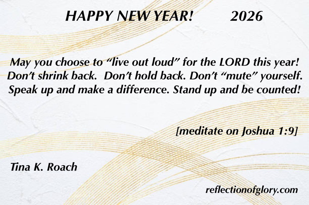 LIVING “OUT LOUD!” January 1, 2026 Tina K. Roach Christianityaction, freedom, God, Holy Spirit, Jesus, life, Lord, new year, no fear Share this: Click to share on Facebook (Opens in new window) Facebook Like Loading...